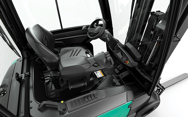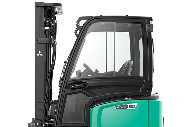 Chariot élévateur électrique avec cabine , de la marque Mitsubishi , type FB16ACN